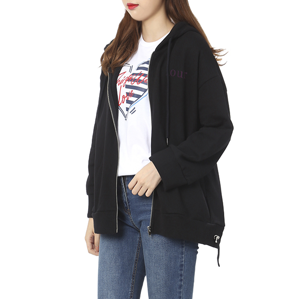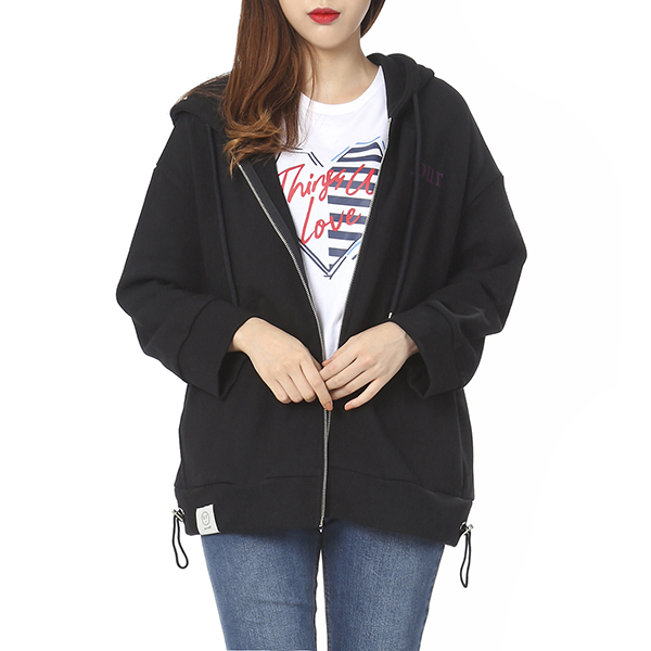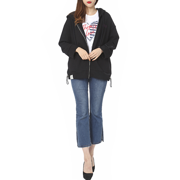후드장식과 집업 클로징으로 포인트를 준 티셔츠 입니다. 루즈한 핏 라인과 밑단 스트링 장식으로 트랜디함이 돋보이는 아이템 입니다.