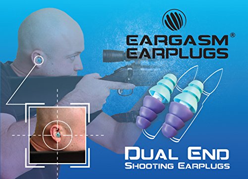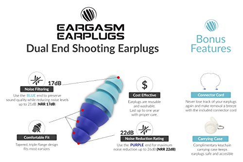 Eargasm Dual End Shooting Earplugs with Two Decibel Reduction Options, a Connector Cord, and Bonus Carrying Case