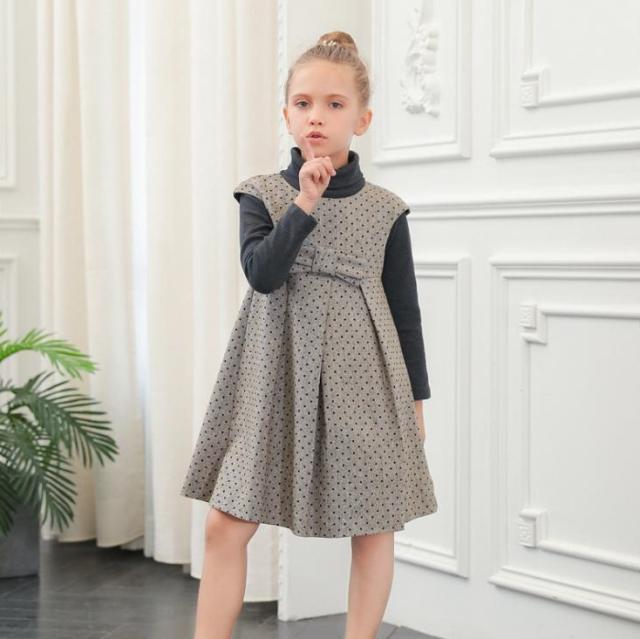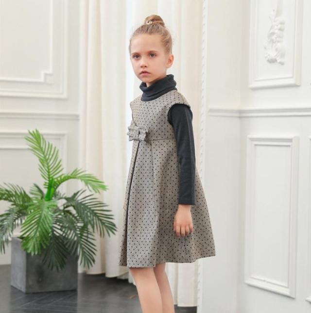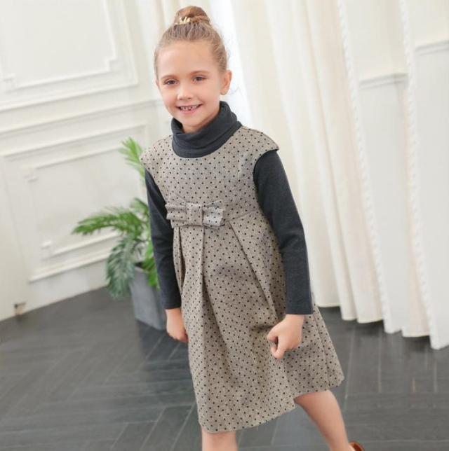 ・キーワード:子ども服 キッズワンピース ノースリーブ ドッド ブラウン系 2018年秋トレンド
