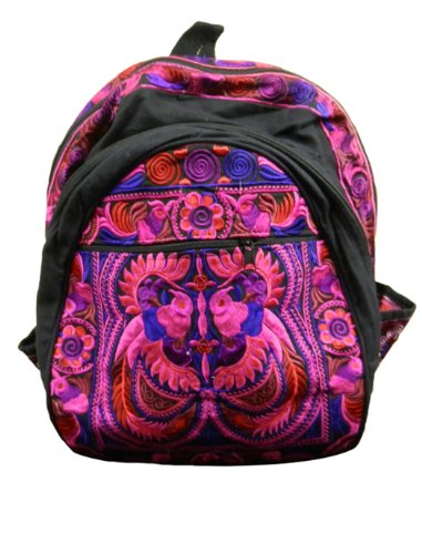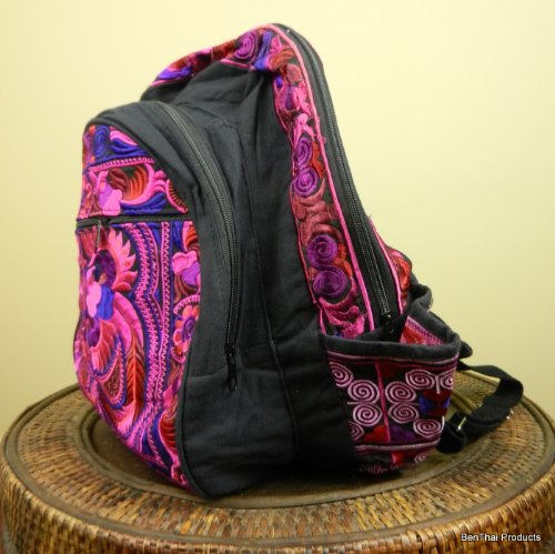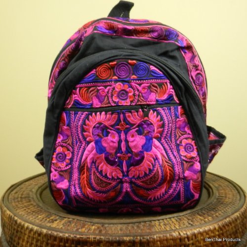 -. Feature : Buy with confidence / Money-back Guarantee / Worldwide Delivery / Ideal for a day pack, school bag or carryall, each bag is unique in its use of embroidered stitching, fabrics and colorful patterns. / black cotton lined with strong adjustable shoulder straps / two zippered compartments, an outside zippered pouch and side water bottle holders. / Size: 15" wide, 18" long, 10" deep