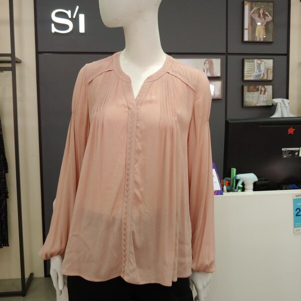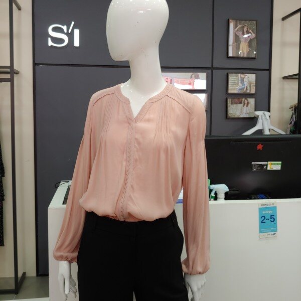 브이넥스타일의 깔끔한 블라우스로 스커트,바지에 잘 어울리는 데일리룩으로 코디하기 좋아요~~