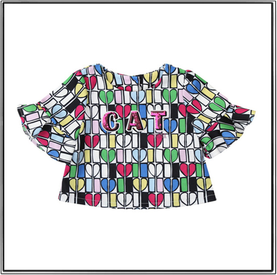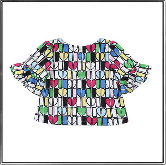 상품설명 멀티 하트 패턴탑입니다. 스커트와 세트 코디해주셔도 너무 예쁜 탑인데요. 소매라인을 따라 퍼지는 벨라인에 플레어단까지 더해주어 엣지를 주엇습니다. 스팽글 로고 와팬으로 포인트를 준 제품입니다.