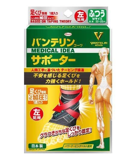 | バンテリンコーワサポーター足くび専用にしっかり加圧タイプが新登場!足くびが外側に曲がり過ぎることを防ぎ、足くびのブレを抑制することで、歩きやすくなります。また、面ファスナーを留める位置によって固定力の調節が可能です。 |