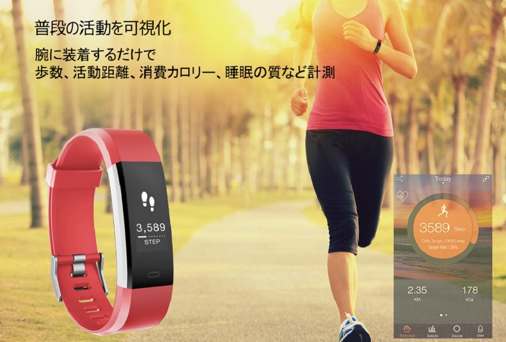 ID115plus is equipped with a high-precision pulse sensor and acceleration sensor, you can grasp movement of the body such as step count, calorie consumption, exercise distance, heart beat just by wearing it on the arm.
