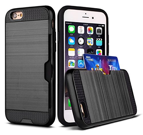 iPhone 8 Case,ZHIXIN Creative Heavy Duty Hybrid Dual Layer Brushed Texture Slim Lightweight Shockproof Back Case with Card Slot Kickstand for iPhone 8(Black)