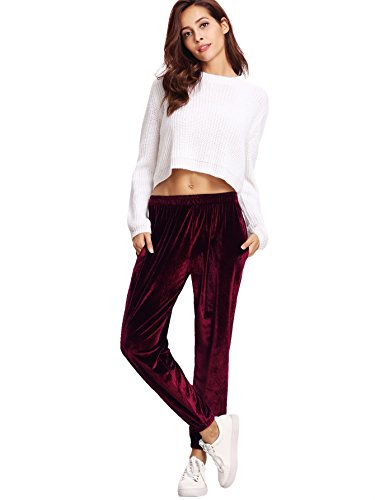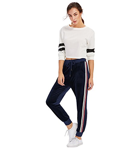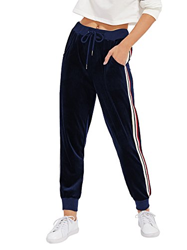 -. Title : SweatyRocks Women's Jogger Pants Tape Side Velvet Drawstring Sweatpants With Pockets