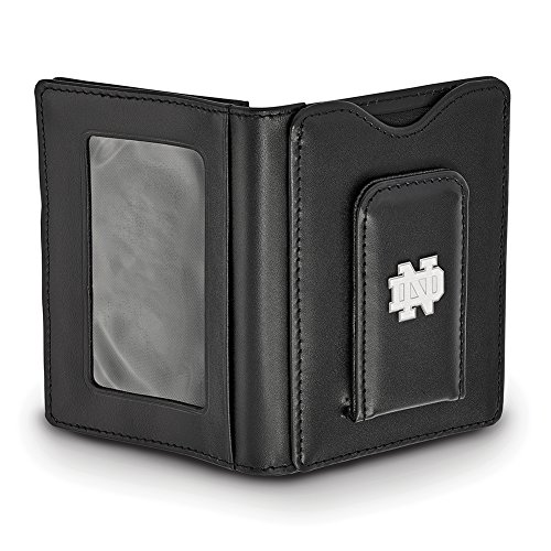 -. Title : LogoArt Sterling Silver Notre Dame Black Leather Money Clip Wallet SS012UND-W1