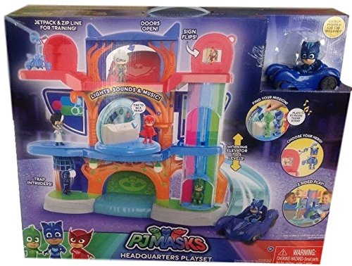-. Binding : Toy -. Brand : Just Play -. Color : multi-colored -. EAN : 0886144245664 -. Feature : Fun play for kids just like the show / Car ramp, 3 levels, elevator / Ages 3+ and up -. IsAdultProduct : 0 -. Label : Just Play -. Manufacturer : Just Play -. Model : 24565 -. MPN : 24565 -. NumberOfItems : 1 -. PackageQuantity : 1 -. PartNumber : 24565 -. ProductGroup : Toy -. ProductTypeName : TOYS_AND_GAMES -. Publisher : Just Play -. Studio : Just Play -. Title : Just Play PJ Masks Headquarter Playset -. UPC : 886144245664 -. Warranty : No Warranty