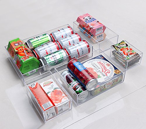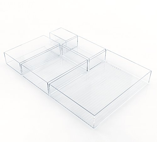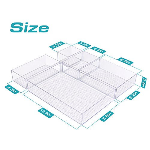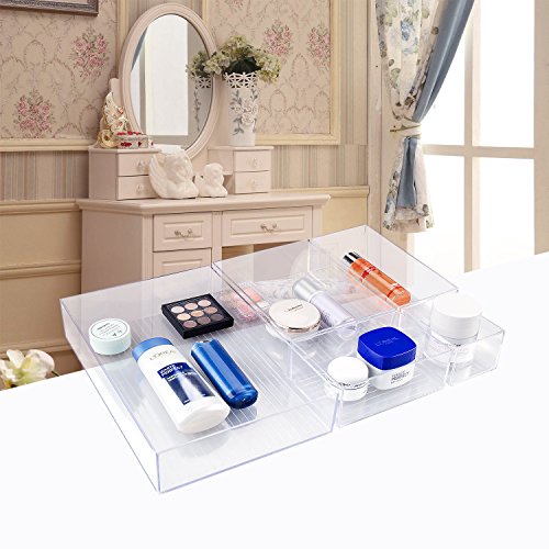 Avolare Clear Vanity Organizer Home Cabinet and Pantry Storage Organizer Bins Stackable Bathroom Office Drawer Storage Case for Makeup Cosmetics, Toiletries, Kitchen Utensils, Set of 5