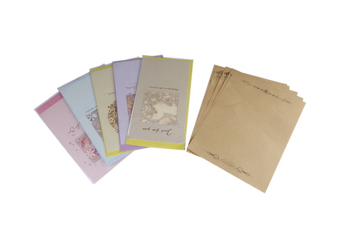 ・セット内容:グリーティングカード×5種類(エッフェル塔、For youの文字、蝶々、ツバメ、とんぼ) レター用紙×5