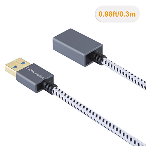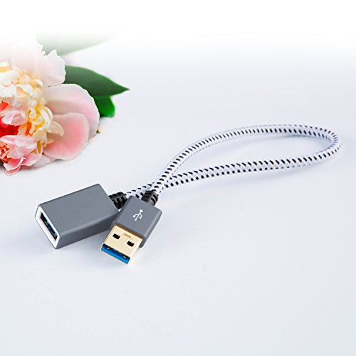 CableCreation Short USB3.0 Extension Cable, USB 3.0 A Male to Female Extension Cable USB 3.0 Extender Cord for Oculus VR, Playstation, Xbox, Keyboard, Printer, Scanner (1ft) Space Gray Aluminum