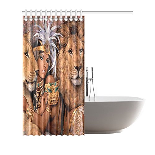 CTIGERS Sexy Lioness Shower Curtain Beautiful African Women and Lion Polyester Fabric Bathroom Decor 66 x 72 Inch