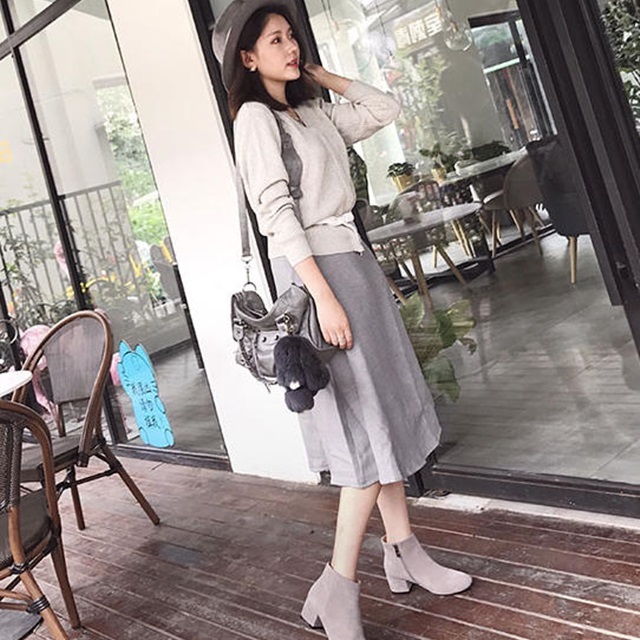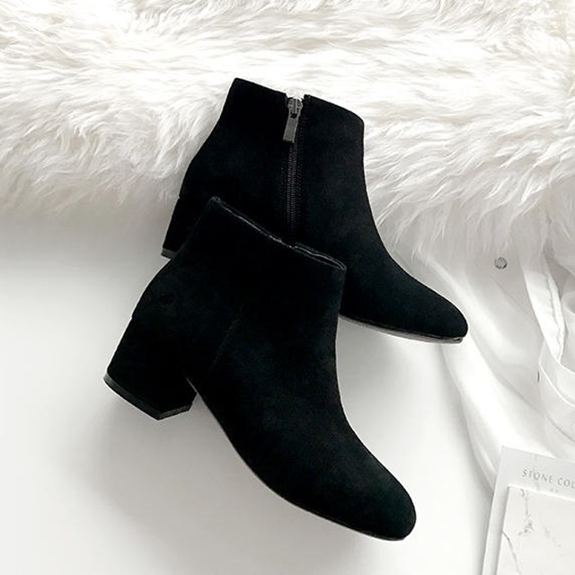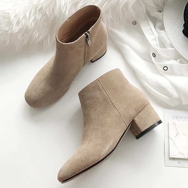 スエード生地のショートブーツ。