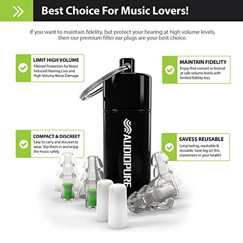 Audiopure Ear Plugs | #1 Concert Earplugs | Noise Reduction Acoustic...