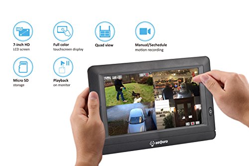 -. Feature : ✔True DIY, Plug and Play - In place the cameras, power up and job done. There you have your complete home security system / ✔Remote Access & Live Viewing via Internet - Monitor anytime, anywhere with the free Sequro App on iOS or Android. / ✔Portable All-in-One Touch screen Monitor - Handy, User friendly interface, Motion/Scheduled/Manual Recording, Instant playback videos and Live view in one screen / ✔Long Transmission Range - Exceptionally long wireless transmission range up to 1,000 ft in open area / ✔PIR sensor Built-in Camera - Built-in motion detection sensor with adjustable sensitivity settings to avoid false alarm and save memory space