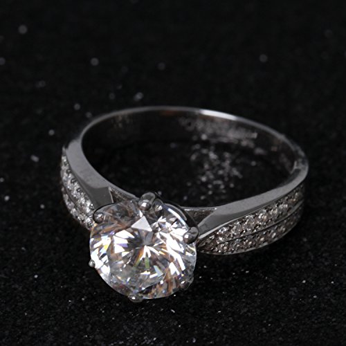 -. Feature : Specification: 1/2/3 Carat NSCD (Nano Simulate Carbon Diamond). VVS1 Clarity. Size from 4.5 to 10 (US SIZE). Metal Stamp: Silver Plated Platinum. Pure Silver over Gold. Shape and cut: Round Brilliant. Color Grade: D-H. Excellent Polish and Symmetry. / Crafted in Silver Plated Platinum with NSCD Diamond. It will never fade or tarnish,it will never make your fingers green. Best quality synthetic diamond absolutely as beautiful as natural. This flawless NSCD Diamond Engagement Ring truly highlights the beautiful center diamond with its unique design. NSCD Diamonds are a cut above the rest. / NSCD diamonds conform to recently introduced comprehensive set of standards of gemological Institute of America the world's foremost authority on diamond grading. Each stone is guaranteed to bring the sparkle and brilliance as that of a true diamond. / Occasion: Anniversary, Engagement, Gift, Party, Wedding. Maximum elegance and versatility is combined in this striking ring. Sterling silver is exquisitely formed into a finger ring. Additionally, sterling silver is a neutral hue that can be worn on a daily basis or any special occasions with any colors. / Ring comes with a free velvet box ready for gift giving and for protecting the valuable surface from scratching. To avoid scratches, store in a lined jewelry box or pouch.