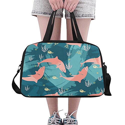 (InterestPrint)/Accessories/Luggage, Bags Travel/DIRECT FROM USA/InterestPrint Travel Duffel Tote Bag with Shoes Compartment for Women Men Sea Life Pattern