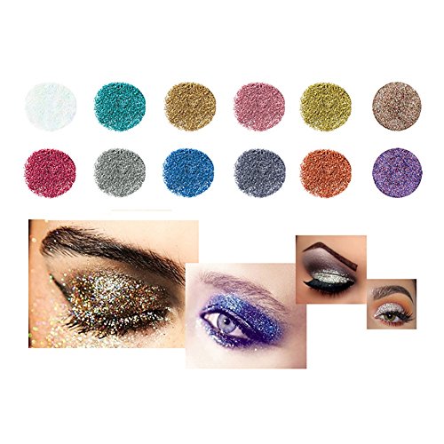 -. Feature : 12 colors diamond glitter powder, it contains shimmering powder, special and cute for your eyes / Smooth texture with shimmering powder, make you eyes dazzlingly beautiful shinning / Diamond gillter eye shadow, soft and durable, comfortable touch, long lasting / Suitable for professional smoky eyes makeup, wedding makeup, party makeup or casual makeup / Package include: 12 colors eyeshadow glitter loose powder