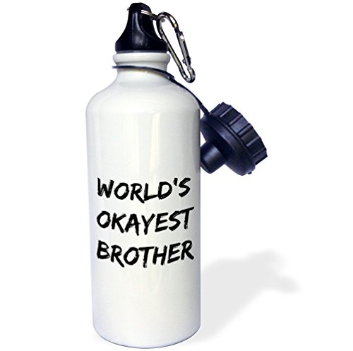 3dRose wb_221888_1 Worlds okayest brother in black handwritten like font Sports Water Bottle, 21 oz, White