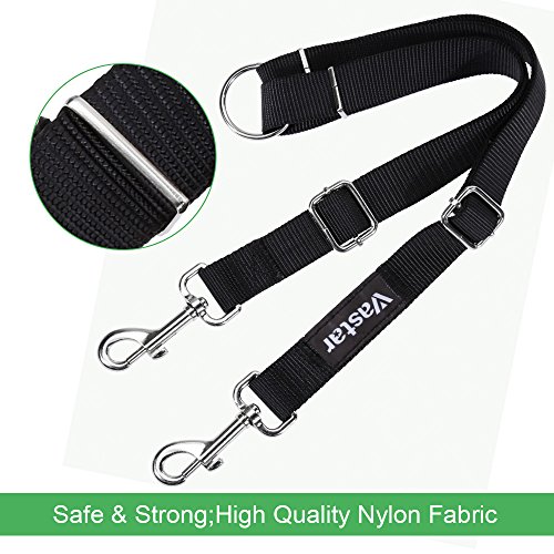 -. Feature : Double dog leashes for both big dogs and small dogs / Walking two dogs at the same time easily with this two dog leash / High-quality nylon and aluminum alloy buckle, firmly guide your pets / 2.5cm wide and adjustable from 13.8 to 24 inch (not including the hooks and alloy connection ring) / Each side of the dog leash can bear weight up to 110 pounds, so the Vastar double dog leashes totally bear weight up to 220 pounds with bivector traction