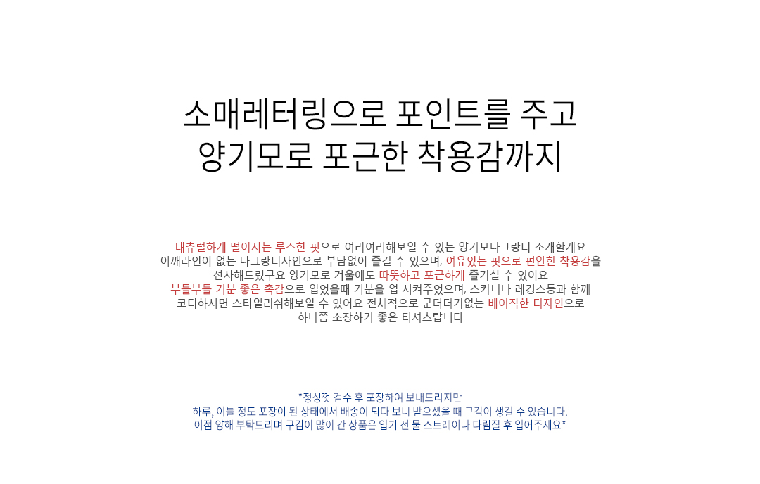 .같은 사이즈라도 체형에 따라 핏감이 조금씩 다를 수 있습니다.