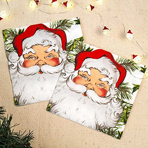 Talking Tables Botanical Santa Napkin 13" for Christmas Parties and Dinners, (20 Pack)