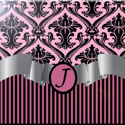 Rikki Knight RK-8intilec-2126 8" X 8" Letter "J" Light Pink Damask Stripes Monogrammed Design Ceramic Art Tile