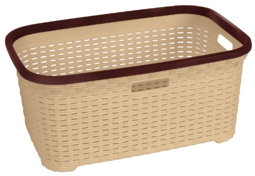 -. Title : Rattan (Wicker Style) 1 Bushel Laundry Basket (Beige Base and Brown Trim)