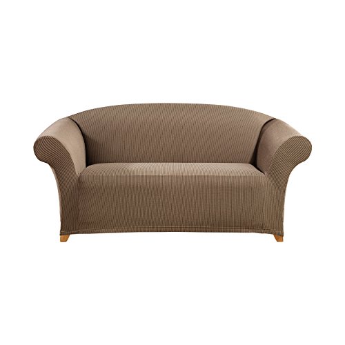 -. Title : Sure Fit Simple Stretch Ticking Stripe 1-Piece - Loveseat Slipcover - Chocolate (SF45003)