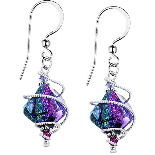 -. Binding : Jewelry -. Brand : Body Candy -. Department : womens -. Feature : 1.5 inch; 38 millimeter length women's earrings / Pair of 925 sterling silver earrings handcrafted in the USA / Handcrafted purple and blue diochroic glass earrings / Dangle earrings created using Swarovski crystals / Fish hook ear wires are comfortable, easy to use, and a timeless style -. Label : Body Candy -. Manufacturer : Body Candy -. Model : HC-1672P -. MPN : HC-1672P -. PartNumber : HC-1672P -. ProductGroup : Jewelry -. ProductTypeName : FASHIONEARRING -. Publisher : Body Candy -. Studio : Body Candy -. Title : Body Candy Spiral Dichroic Glass Dangle Earrings Created with Swarovski Crystals