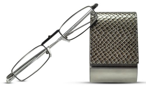 -. Title : Cinzia Folding Readers Reading Glasses with Reptile Pattern Case, 1.75, Silver
