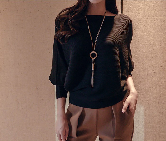商品名:ニット ドルマン 無地 長袖