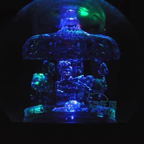 [Products]: Craftsman house 120MM forwarded within Acrylic Crystal Light water polo horse rides music box, beautiful appearance, with high-grade crystal materials, beautifully designed, fresh and elegant colors, exquisite workmanship, very ornate crystal sculpture details inside ... water polo there are three pony, twist the bottom of the music clockwork, carriage rides inside the crystal will rotate with the music, but also spray color chips ... internal high-quality music movement, sound melodious. give the people around you , will make a surprise Ta feel oh! So romantic a baby, is the perfect gift to send the TA!