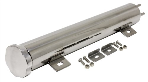 - 13" universal polished stainless steel radiator overflow tank with twist-in aluminum cap.