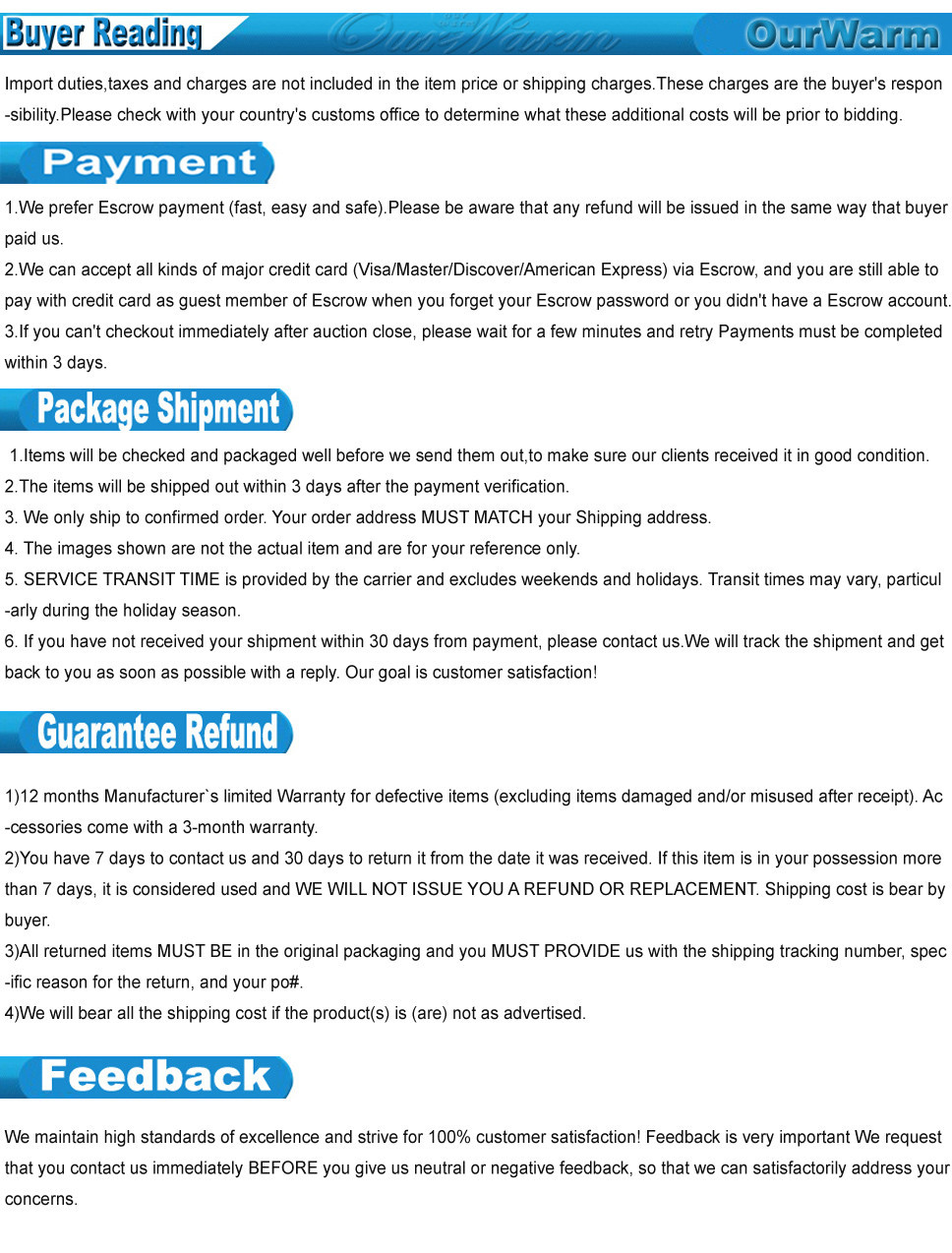 Note 3: Buyer should responsible for any tax and custom duty if there is.