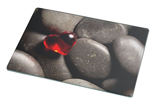 Rikki Knight RK-LGCB-1045 Red Glass Heart on Pebbles Design Glass Cutting Board, Large, White
