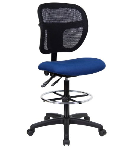 -. Title : Mid-Back Mesh Drafting Stool with Navy Blue Fabric Seat