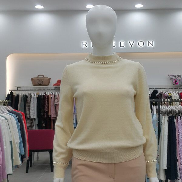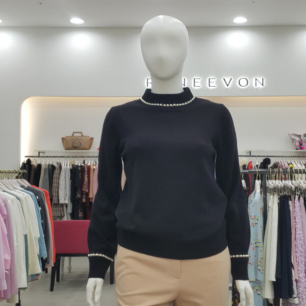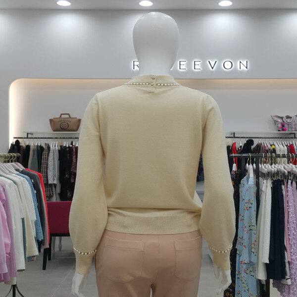 넥라인과 소매부리에 진주장식으로 포인트를 준 풀오버니트입니다~