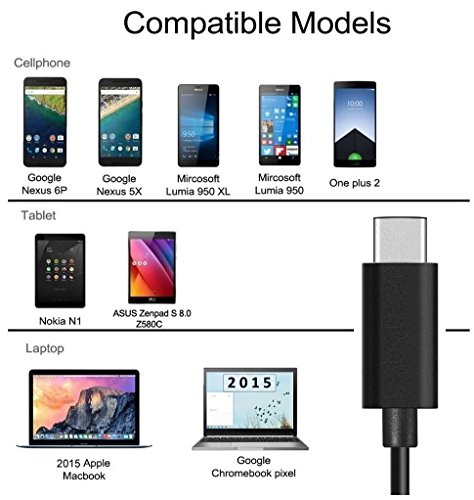 - Feature : Hi-Speed Type-C USB 3.1 (USB-C) Male to Standard Type A USB. Data sync, charging, Video & Audio 4-in-1 3.3ft/1M Cable with a reversible design / Designed and constructed with High-quality materials to ensure durability & reliability and provide superspeed charging and transferring / Premium Quality 3.3ft/1M Type C Sync & Charging Cable for your phone, tablet or laptop - standard length, just right and perfect for charging / High grade housing and reversible design of the USB C helps you insert the connector to your devices in a right way all the time. / Compatible with Google Nexus 5X/6P, ChromeBook Pixel, OnePlus 2, Nokia N1, Lumia 950, 950XL, Apple Macbook 2015 & Other Type-C Supported Devices