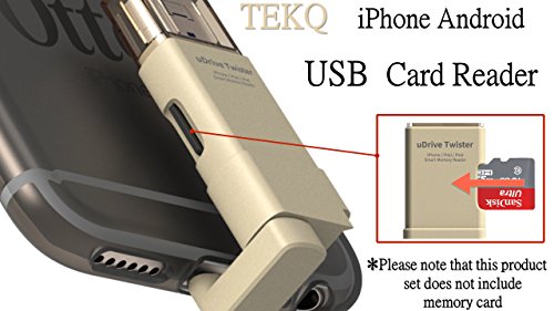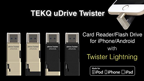 [Apple MFI Certified] TEKQ Twister uDrive microSD Card Reader to Lightning for iPhone, USB 3.0 Flash Drive/memory stick/storage expansion for iPhone, iPad, iPod, Mac and Windows PC. (gold)