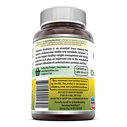Easy for the body to absorb and process, chromium picolinate is a stable form of chromium, which is why it is suggested to those having low chromium levels. With our optimal dose, preservative-free, diet-friendly supplement, Amazing Nutrition is the ideal choice of: