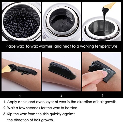 Usage: 1. First, put the wax beans in the inside of the heater,and let the wax beans be heated to the flow state and suitable temperature. 2. Keep the skin clean and dry and analyze hair growth direction. 3. Use the hair removal stick to get the right amount of tax hair wax,remove the edge of the hair rod and stick the skin,and apply a thin and uniform wax to the hair direction. 4. Wait for a moment,confirm that the waxed wax has solidified and clenched,taut the skin of the hair, lift and adhere to the tail edge of the waxing wax,and quickly tear off the hair growth direction.