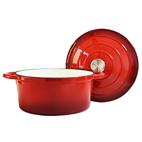 Studio : Yuanfang Enamel Cookware Co.,Ltd Publisher : Yuanfang Enamel Cookware Co.,Ltd Product Description 2017 New Look: Forget about the classic dull cookware,it is time to give your kitchen a totally new look with our vibrant and stylish dutch oven.The appealing color and elegant enameled finish adds a decorative touch to your table and a beautiful splash of colour. Multi-functional: With a diameter of 26cm and a volume of up to 5.7 litres,it is large enough to cook for multiple guests or the entire family.It can be used to cook all types of braised dishes,stews and even desserts.The color porcelain enamel on cast iron can be used on gas,electric,ceramic and induction cooktops,as well as in the oven.Not recommended for use on outdoor grills or over open outdoor flames.Not for use in microwaves. Best for cook: The cast iron vessel has superior heat distribution and retention,evenly heating bottom sidewalls and even the lid.Tightly fitting lid seals in moisture.The excellent heat retention reduces the amount of energy needed for cooking.This ensures thorough,even cooking throughout your entire dish which is sure to please your family or party guests. Details: The design has intentionally been kept simple to clearly emphasise its range of uses.For this reason,the lid has a special drop-shaped structure on the inside to ensure that condensation can distribute evenly on food while being cooked.Thus,you can always succeed in cooking tender meat and juicy vegetables.The two cast iron handles on the dish's side as well as the lid knob make it easy to handle the dutch oven.Three layers of porcelain enamel are chip resistant. Care instructions: Preheat enameled cast iron pots for 2 to 3 minutes before adding any oil or liquid every time you cook.Use wooden, silicon or nylon utensils.Although dishwasher safe, hand washing with warm soapy water is recommended to preserve the cookware's original appearance. 0