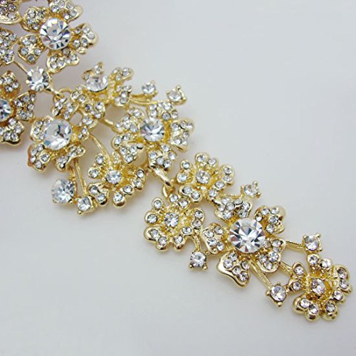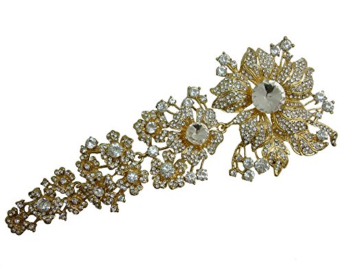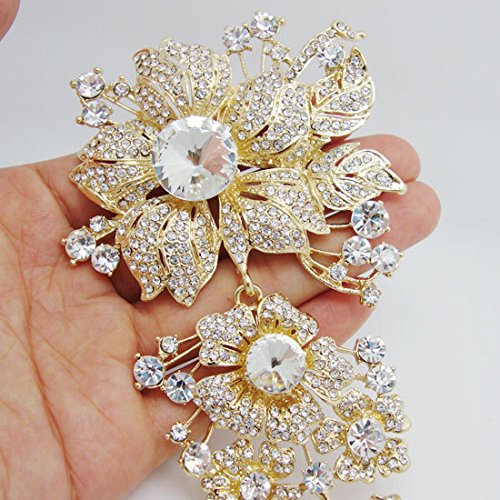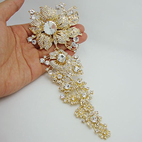 -. Binding : Jewelry -. Brand : T&T Jewelry -. Color : Gold -. Department : womens -. Feature : Estimated arrival time: 7-15 days / Width:8.5cm(3.34"), Length:20cm(7.87"). Weight: 95g. / Wrapping: Come with some spare crystals, and a gift box or gift bag (depend on product size). If you need assistance please feel free to contact us. / Gold-tone backside -. Model : B10470414 -. ProductGroup : Jewelry -. ProductTypeName : FASHIONOTHER -. Title : TTjewelry Luxurious-Gold-tone 7.87" Long Flower Brooch Clear Austria Crystal Bride Brooch