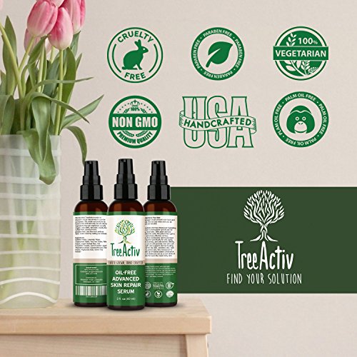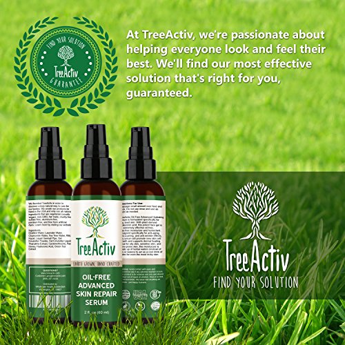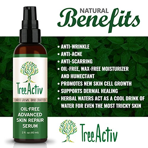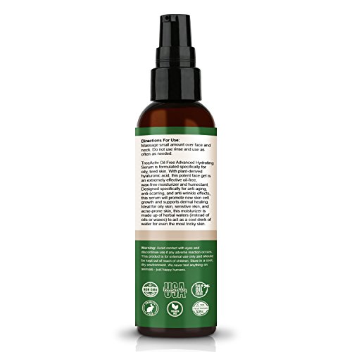 TreeActiv Oil-Free Advanced Skin Repair Serum is formulated specifically for oily, tired skin. With plant-derived hyaluronic acid, this potent face gel is an extremely effective, oil-free, wax-free moisturizer and humectant. Designed specifically for anti-aging, anti-scarring, and anti-wrinkle effects, this serum will promote new skin cell growth and supports dermal healing. Ideal for oily skin, sensitive skin, and acne-prone skin, this moisturizer is made up of herbal waters (instead of oils or waxes) to act as a cool drink of water for even the most tricky skin. Won't leave a greasy mess like a lotion.