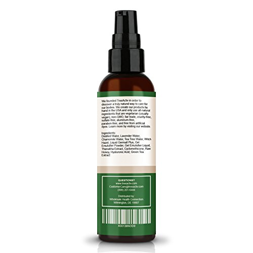 Distilled Water, Lavender Water, Chamomile Water, Hyaluronic Acid, Thanakha Extract, Green Tea Extract, Raw Honey, Gel Emulsifier, Cyclomethicone, Tea Tree Water, Witch Hazel, Liquid Germall Plus