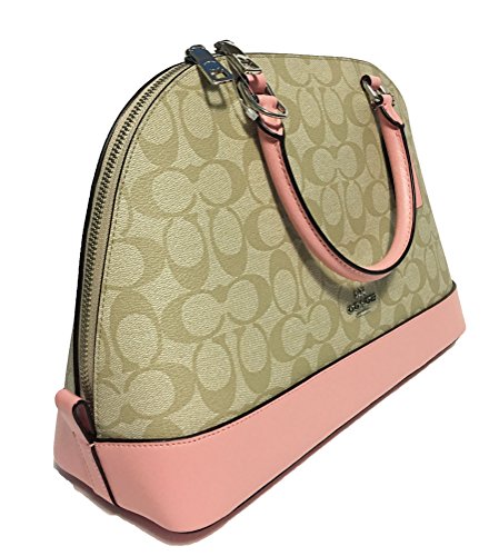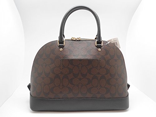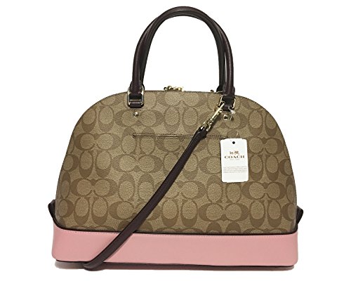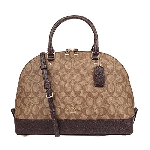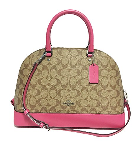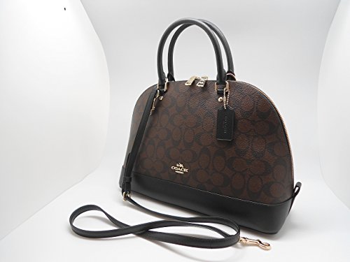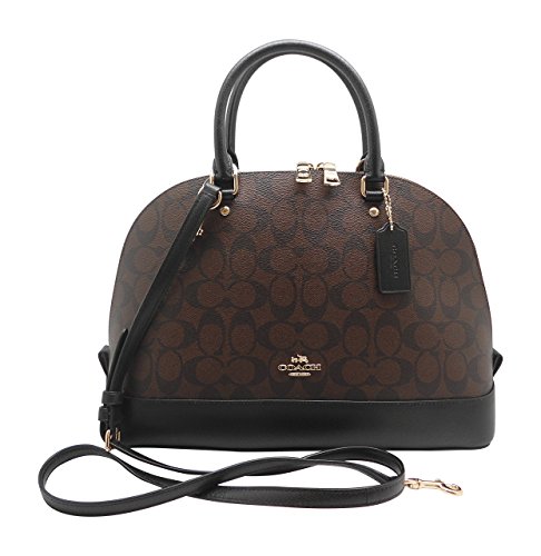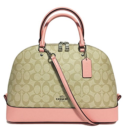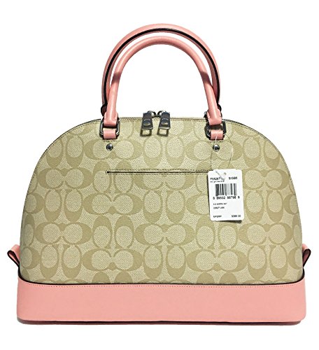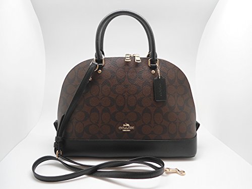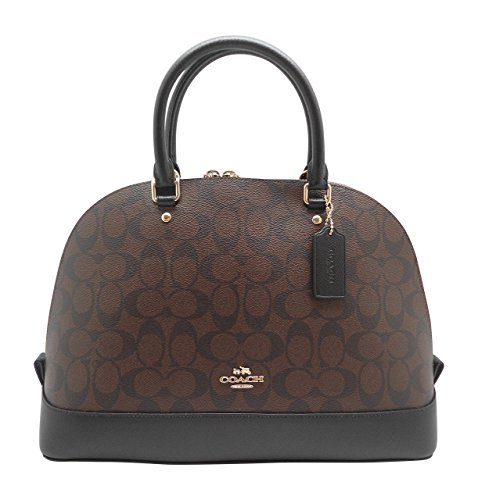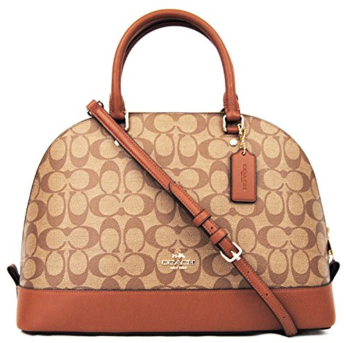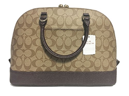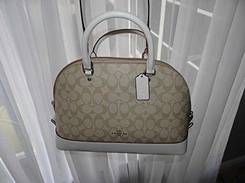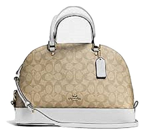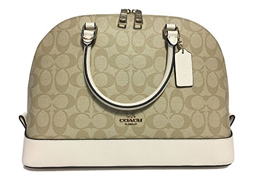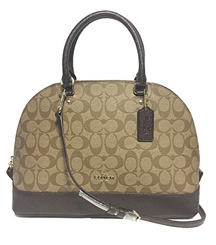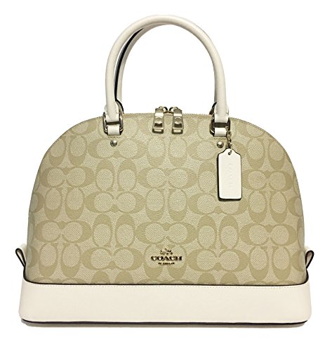 Product Description Coach's Sierra Satchel is wrapped in dual tone Signature C printed PVC coated canvas with crossgrain leather trim and polished light golden tone hardware. This mid-sized dome satchel's lined interior features a zippered pocket and two open slip pockets. Coach's creed and authenticity patch is sewn inside. There is a dual pull zippered top closure. The front is accented with Coach's logo lozenge, and the back has a small open slip pocket. Leather banding runs along the lower edge providing a very classic and tailored look. There are dual handles with a drop of about 4 inches, or you can use the longer, removable and adjustable shoulder and cross-body strap. It measures approximately 12.5 inches (L) x 9 inches (H) x 5.5 inches (W). Designed and made for Coach's Factory Outlet store. Coach does not include a dust cover bag. 0