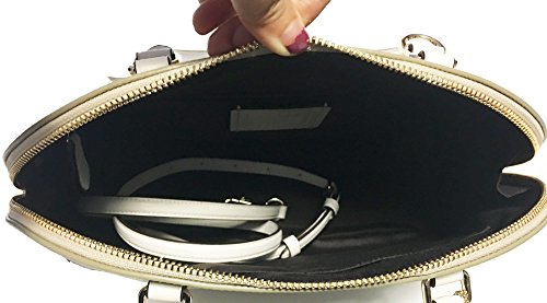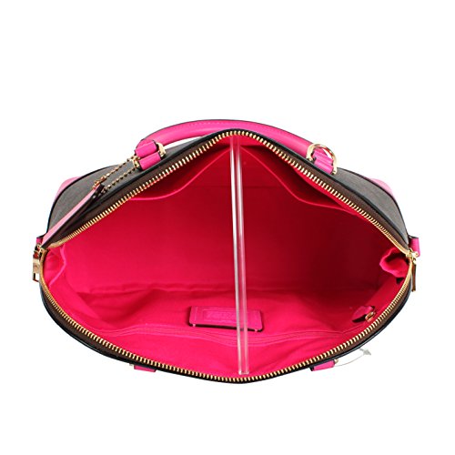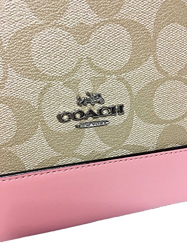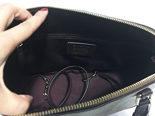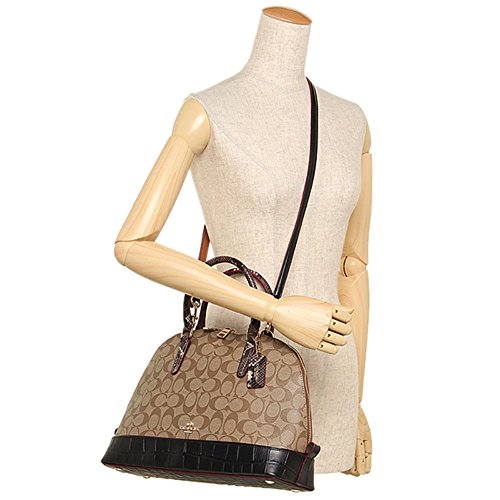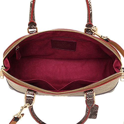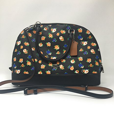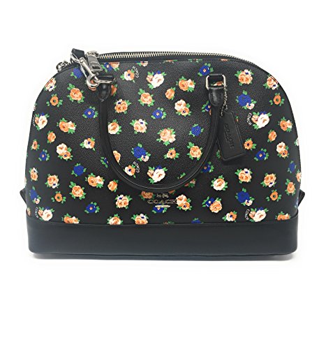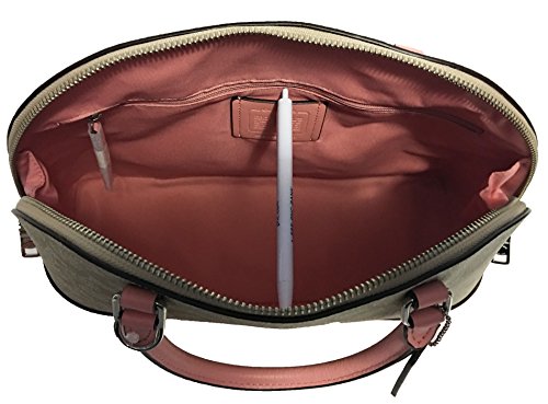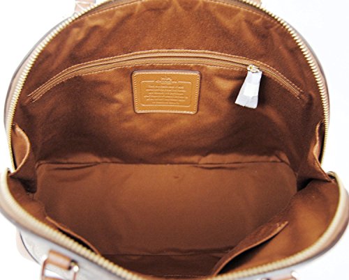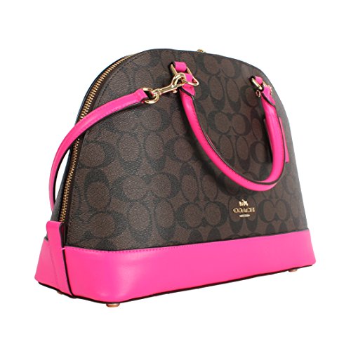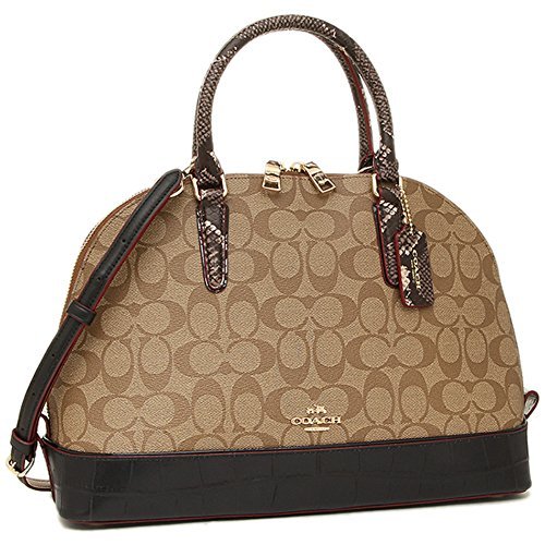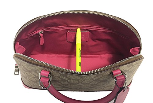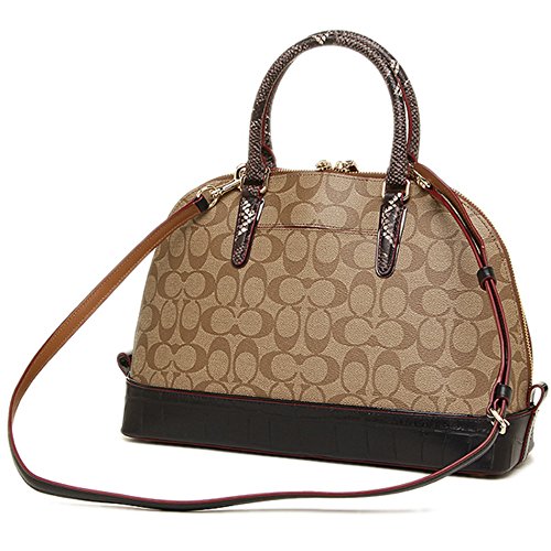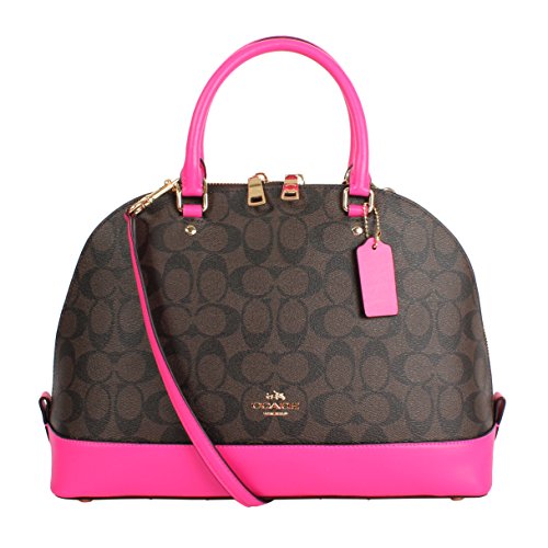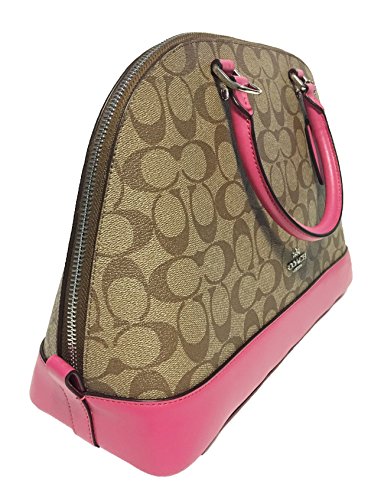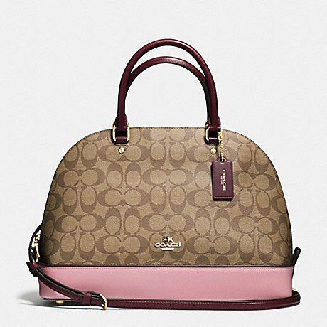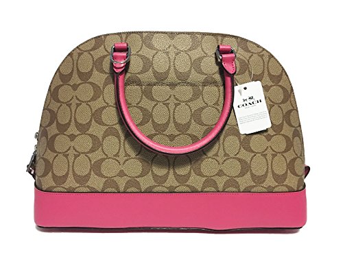 Product Description Coach's Sierra Satchel is wrapped in dual tone Signature C printed PVC coated canvas with crossgrain leather trim and polished light golden tone hardware. This mid-sized dome satchel's lined interior features a zippered pocket and two open slip pockets. Coach's creed and authenticity patch is sewn inside. There is a dual pull zippered top closure. The front is accented with Coach's logo lozenge, and the back has a small open slip pocket. Leather banding runs along the lower edge providing a very classic and tailored look. There are dual handles with a drop of about 4 inches, or you can use the longer, removable and adjustable shoulder and cross-body strap. It measures approximately 12.5 inches (L) x 9 inches (H) x 5.5 inches (W). Designed and made for Coach's Factory Outlet store. Coach does not include a dust cover bag. 0