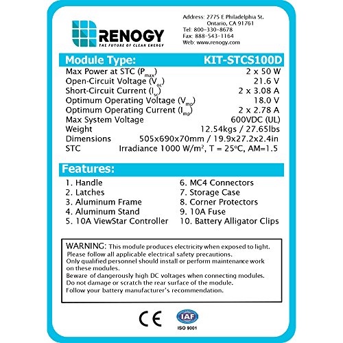 Renogy 100 Watts 12 Volts Monocrystalline Foldable Solar Suitcase