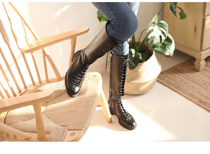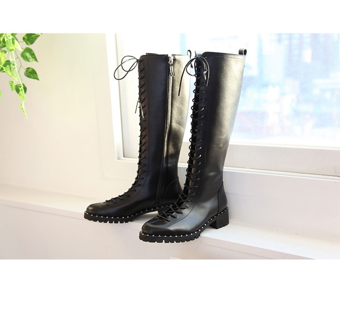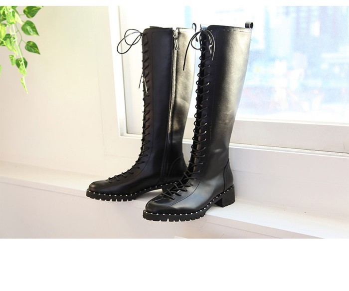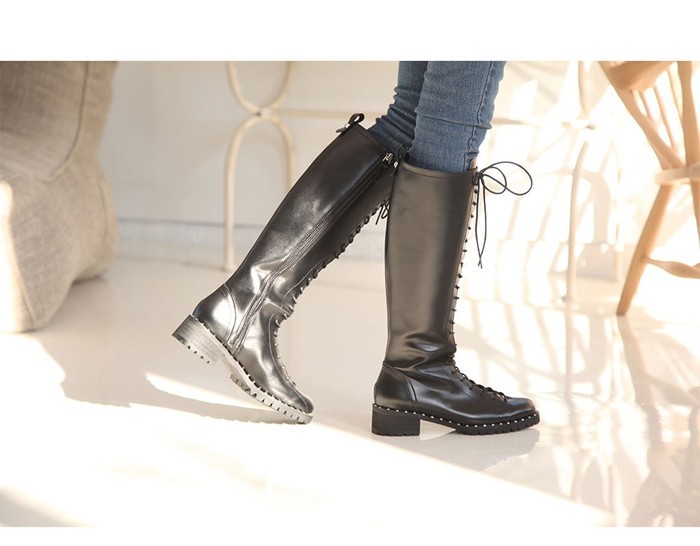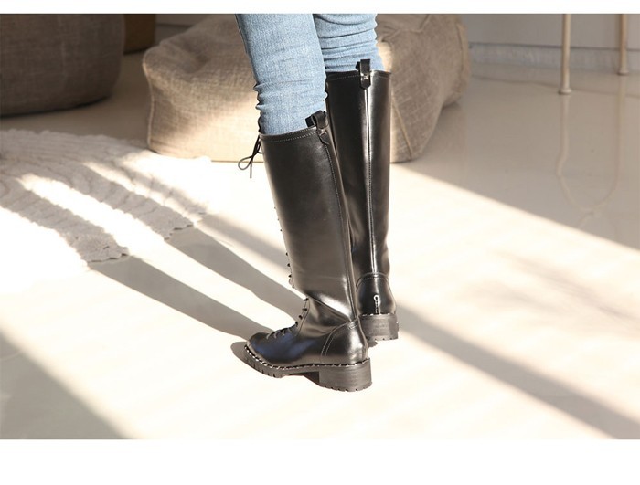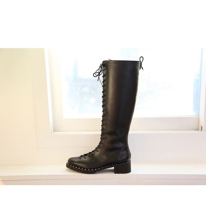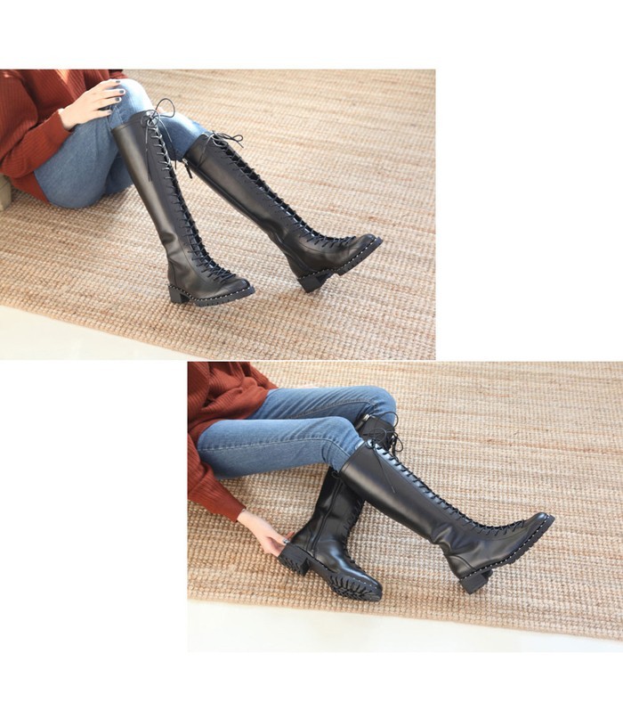商品名:ロングブーツ レディース レースアップ ローヒール 2017 秋 冬 ファッション 靴 婦人靴